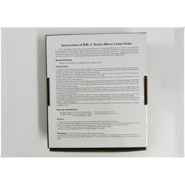 1 × WH-C300L crane scale 2 × AAA batteries 1 × English and Chinese user's manual 1 × Compact color box |